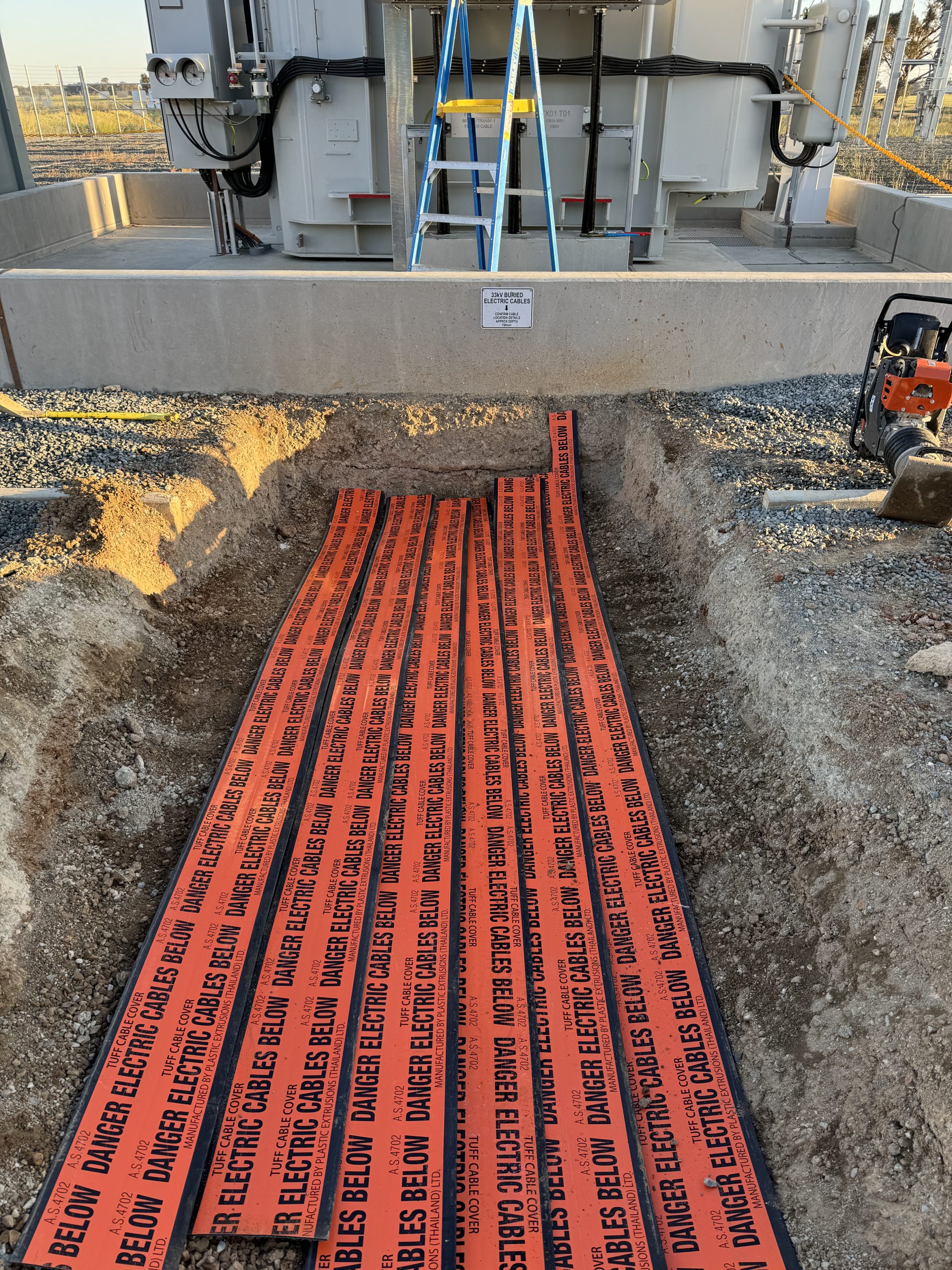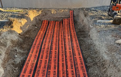 - Trenching, conduiting, and backfilling of HV conduits and LV control conduits